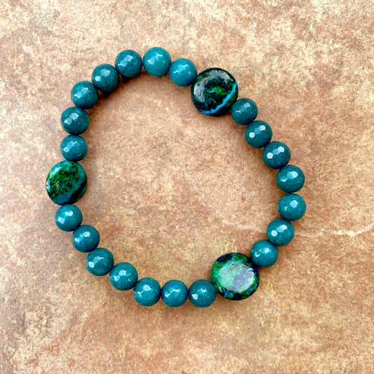 Men's Angelite & Chrysocolla semiprecious gemstone stretch bracelet