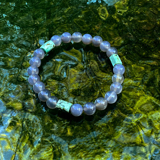 Men’s Gray Agate & African Turquoise Gemstone stretch Bracelet