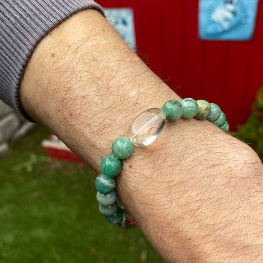 Men's Jade & green Amethyst Gemstone stretch bracelet