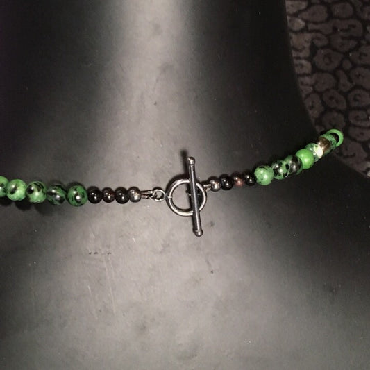 Men’s Ruby Zoisite, Garnet & Onyx Necklace with Howlite skull.