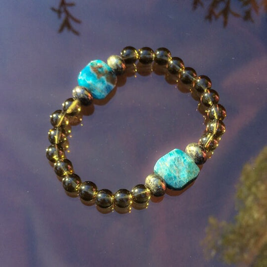 Men’s smokey Quartz, Apatite and Pyrite gemstone bracelet