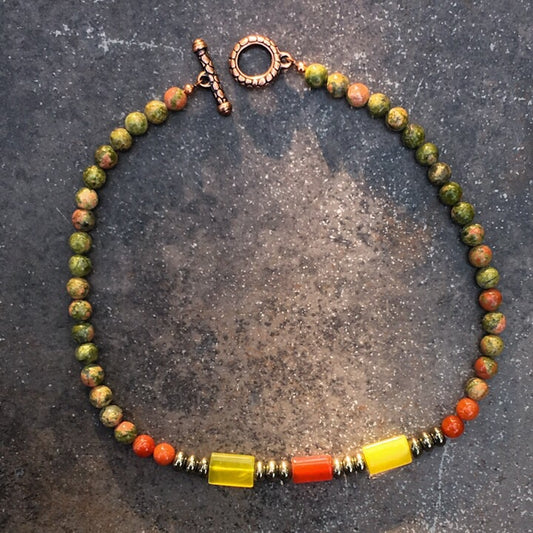 Men's Carnelian, Jade, Unakite and Pyrite Gemstone Necklace