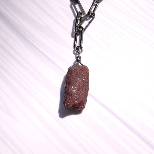 Raw Ruby gemstone Necklace on Black Gold fill Chain