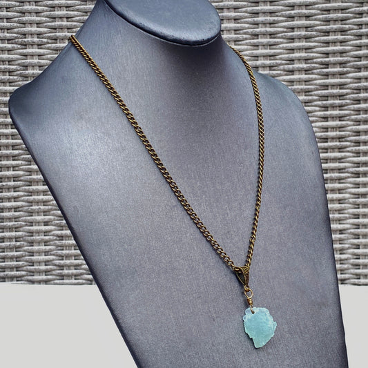 Raw Aquamarine gemstone on brass chain Necklace