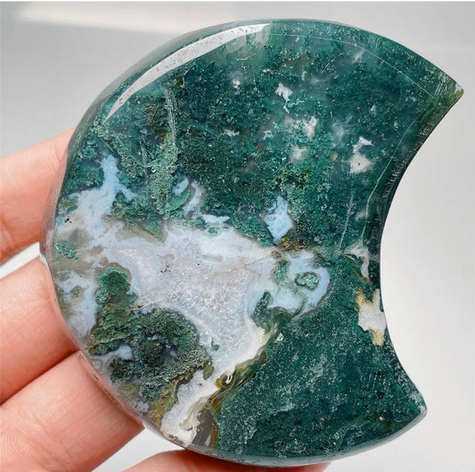 Natural Green Moss Agate Moon gemstone Jewelry dish