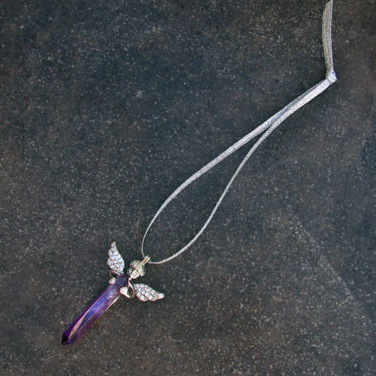 Genuine Amethyst Gemstone shard and Angel Hanging Ornament