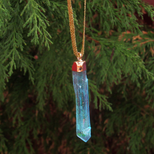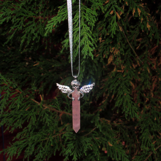 Genuine Rose Quartz Gemstone shard and Angel Hanging Ornament