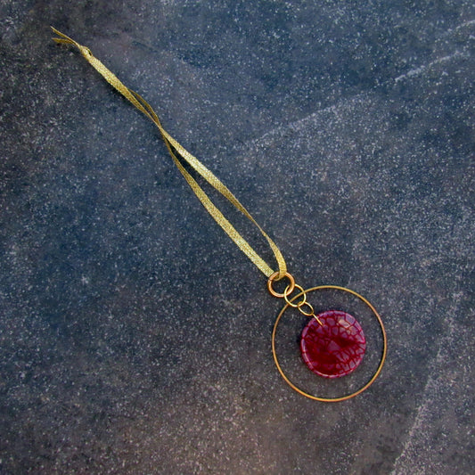 Red Agate Gemstone Hanging Ornament with Brass Ring