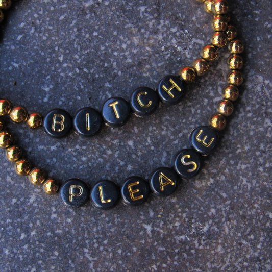 Hematite and Onyx gemstone “BITCH PLEASE” Stretch Bracelets