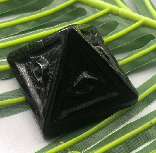Natural Silver Obsidian gemstone carved Pyramid Eye of Protection
