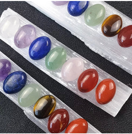 Goddess Blessed Chakra Gemstone Set Polished Selenite Rainbow Crystal