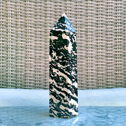 Natural Zebra Jasper gemstone Tower Point Obelisk