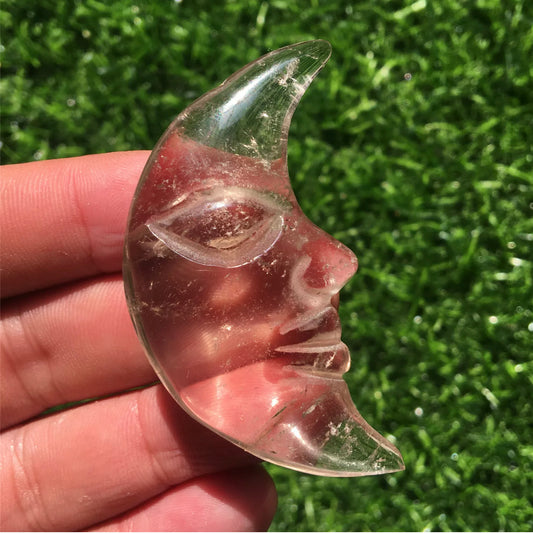 Natural Clear Hand Carved Quartz Crystal Stone Moon Reiki Semiprecious Gemstone Crescent Moon Lunar