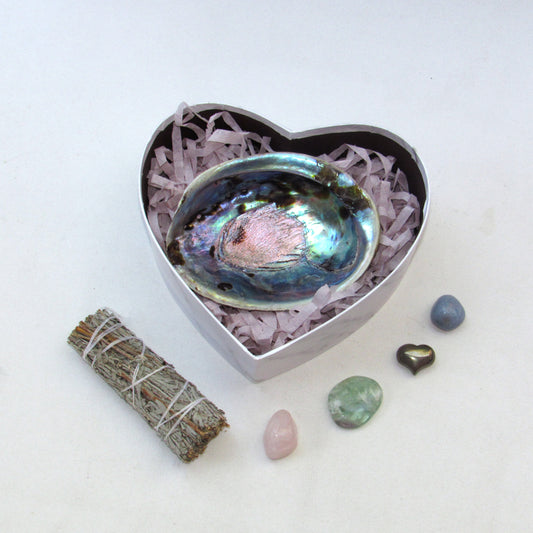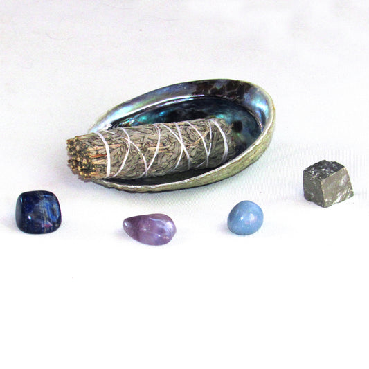Genuine Gemstone and Abalone Smudge Kit with Organic Sage