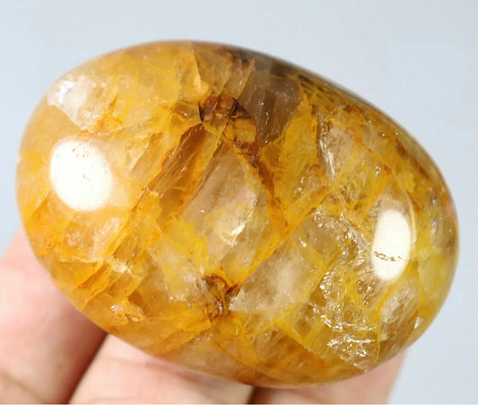 NATURAL Yellow FIRE QUARTZ Hematoid Palm Stone -Madagascar