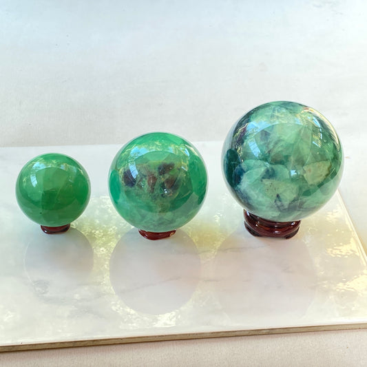 Fluorite Gemstone crystal Glow In The Dark Stone sphere with stand