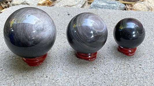 Natural Silver Obsidian Sphere - Crystal Reiki Healing Ball - 5 sizes