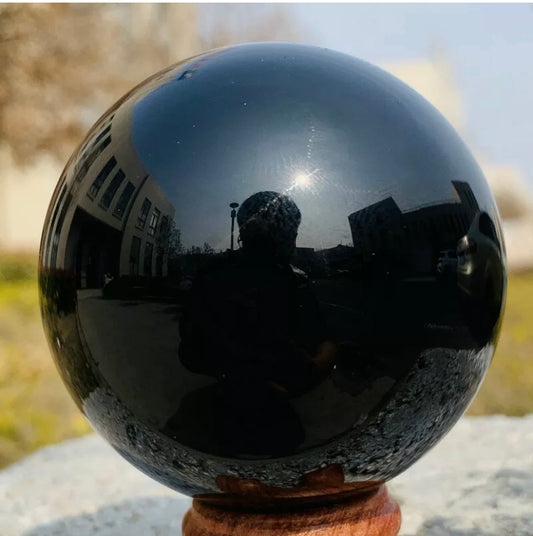 Natural Black Obsidian Sphere Healing Stone + Free Stand