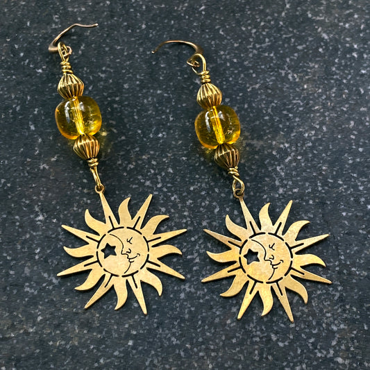 Citrine gemstone sun and Brass Earrings