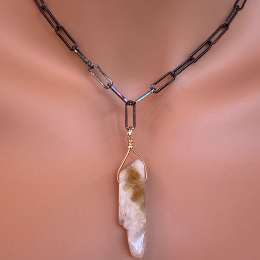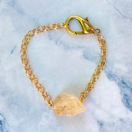 Raw Citrine gemstone and Brass chain clasp Bracelet