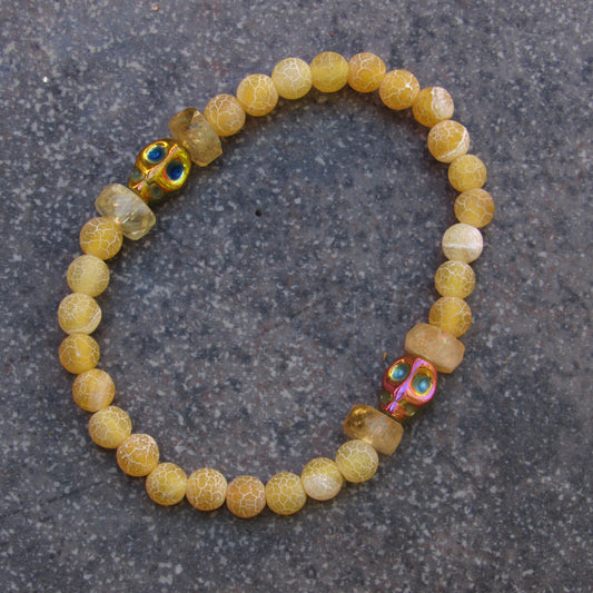 Yellow Agates, Rainbow Hematite gemstone Skull, Citrine Women’s Stretch Bracelet