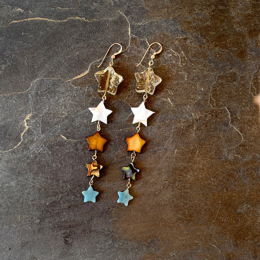 Citrine Gemstone Star with Mother of Pearl, Amazonite and Abalone Shell Drop Earrings