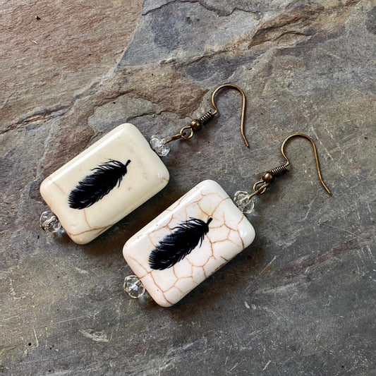 Painted Feather earrings with citrine gemstones.