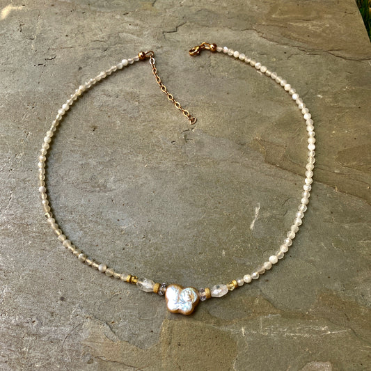 Pearl Butterfly W/ Moonstones and Citrine Gemstones and 14 Kt Gf Choker Necklace
