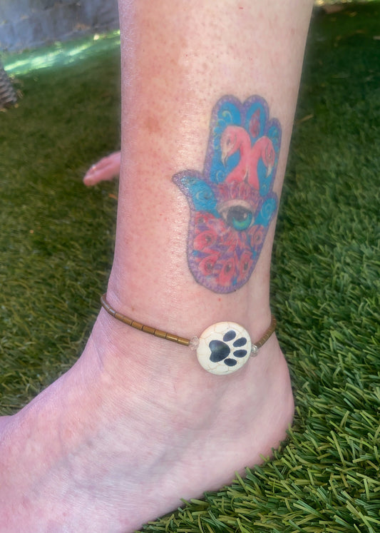 Painted Paw gemstone Anklet with gold hematite and citrine