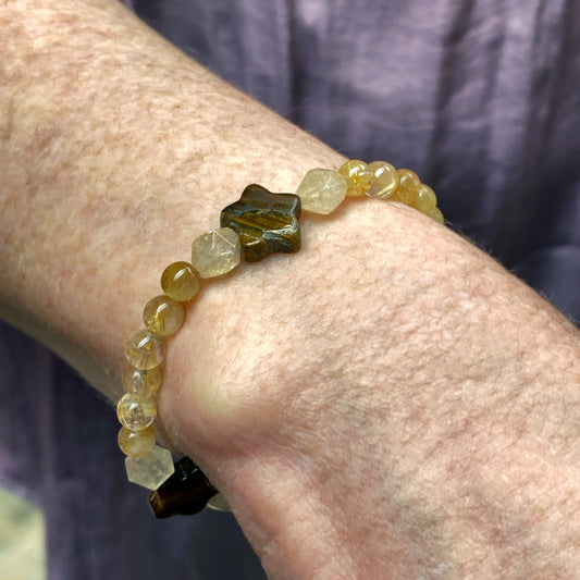 Women's Tiger Eye star, Rutilated Gold & Citrine stretch bracelet