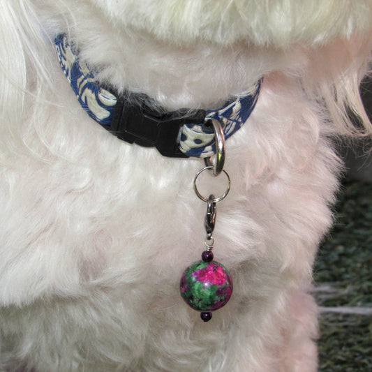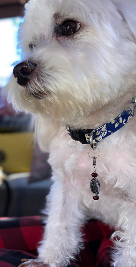 Dragon’s Vein Gemstone Heart Pet Collar Charm with Stainless Steel wire