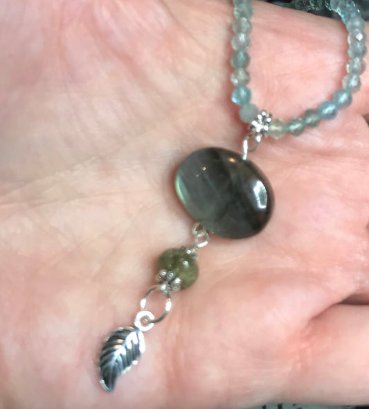 Women's Labradorite & Apatite Gemstone with green Sapphire pendant necklace