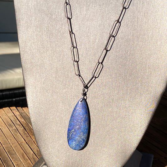 Lapis Lazuli Gemstone pendant on Silver chain necklace