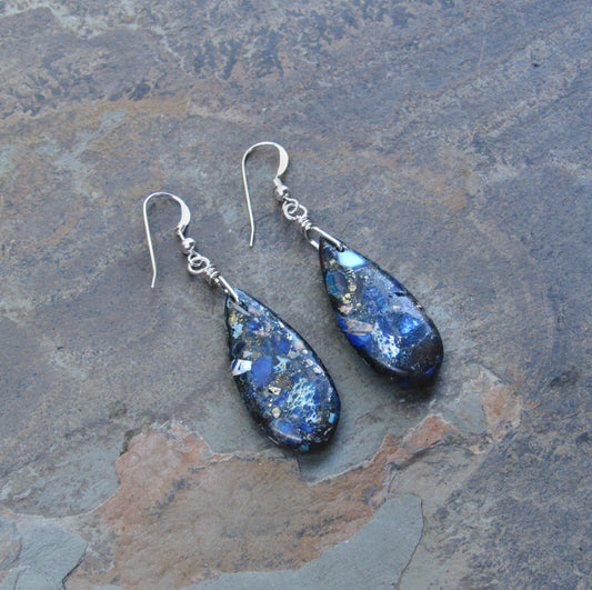 Blue Sea Sediment Jasper Hand Wrapped in Sterling Silver Drop Earrings