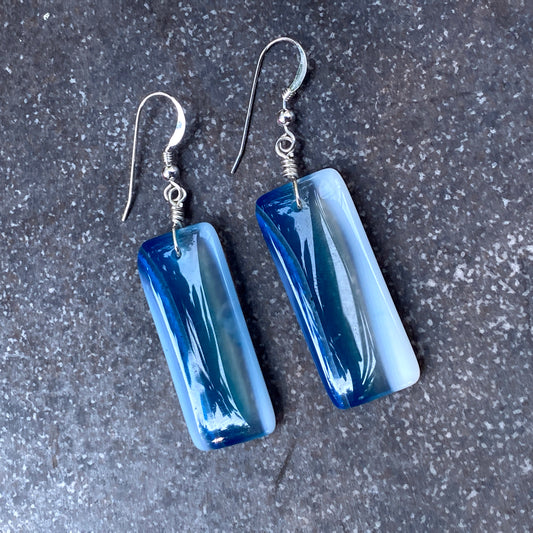 Blue Agate Gemstone Drop Earrings Wrapped with Sterling Silver