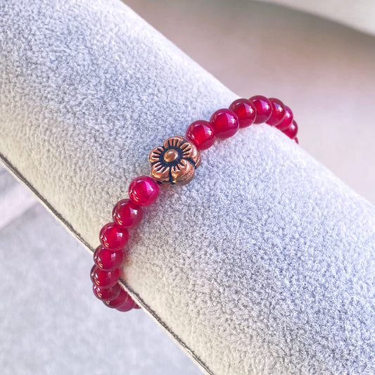 Pink agate and copper flower bracelet