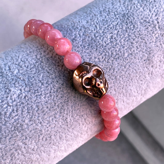 Genuine Angelite and Solid Copper Skull Bracelet
