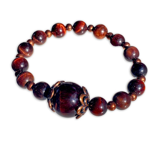 Red Tiger’s Eye gemstone and Copper stretch bracelet