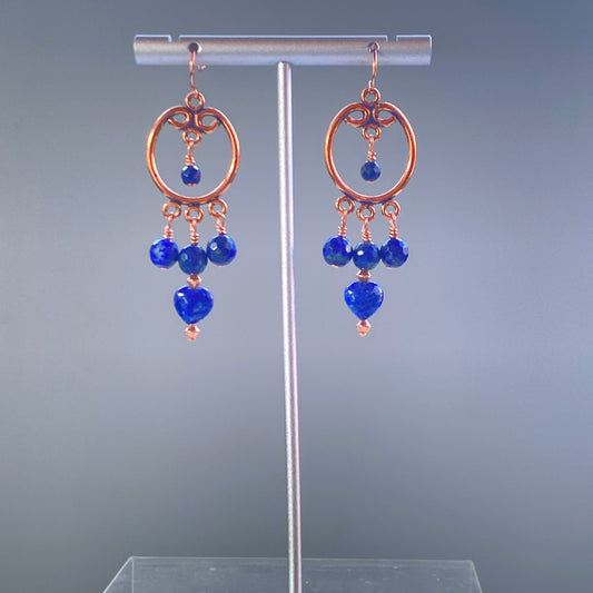 Lapis Lazuli gemstone and Copper Chandelier earrings