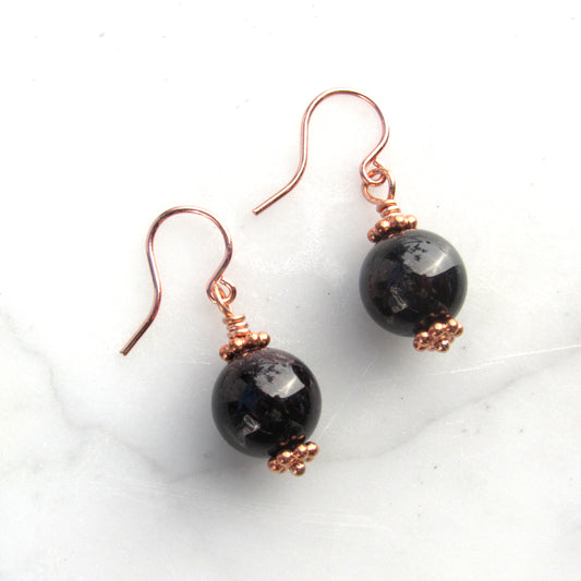 Garnet gemstone on Copper Ear Wire Drop Earrings