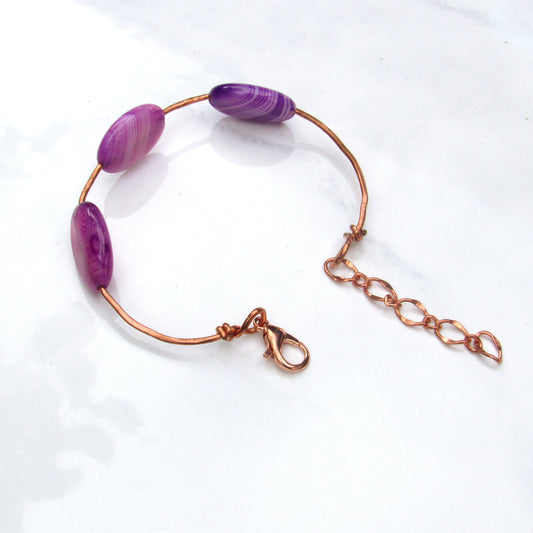 Strawberry Quartz gemstone and Hammered Copper Bracelet