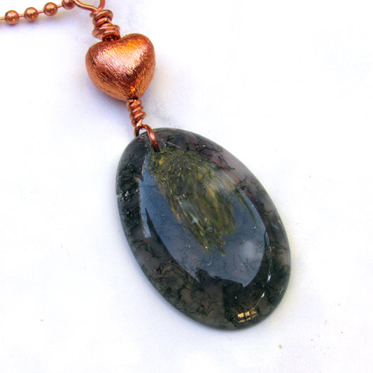 Moss Agate Gemstone Pendant on Copper chain necklace