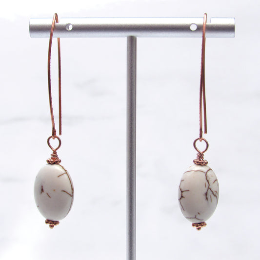 African Turquoise on Hand wrapped Genuine Copper Drop Earrings