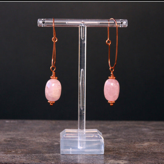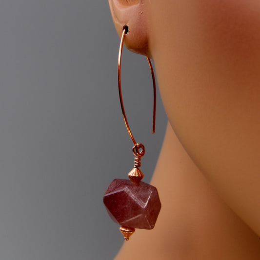 Genuine Copper and Natural Strawberry Quartz gemstone Earrings