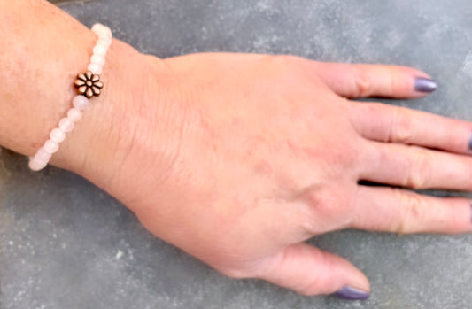 Rose Quartz and Copper Flower Beaded Stretch Bracelet
