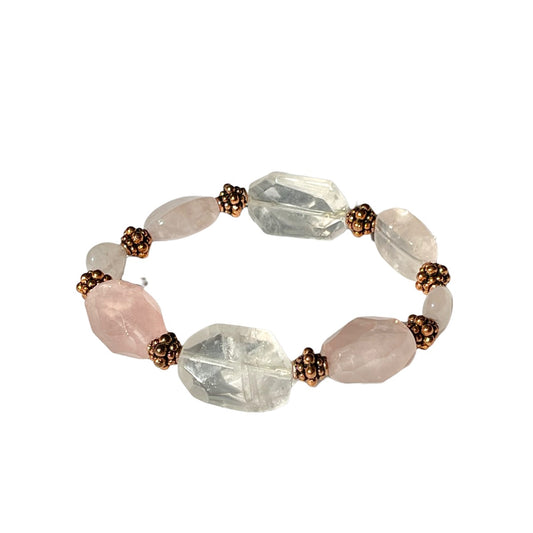 Rose Quartz and Copper Beaded Stretch Bracelet