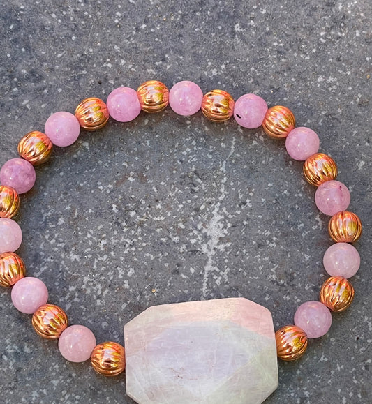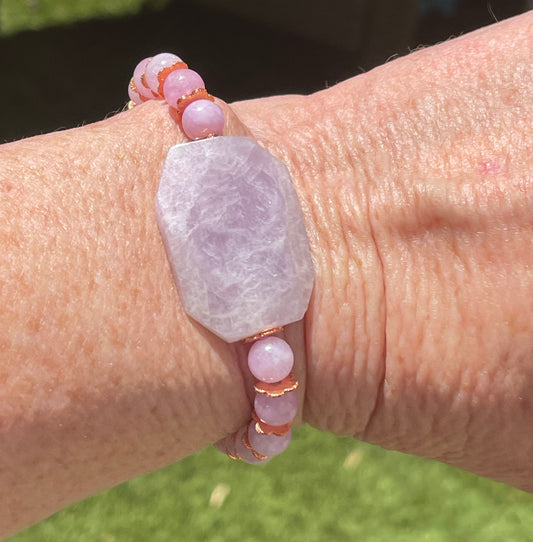 Kunzite gemstone and Copper stretch Bracelet