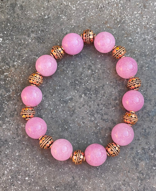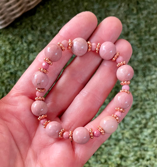 Pink Rhodonite gemstone and Copper Beaded Stretch Bracelet