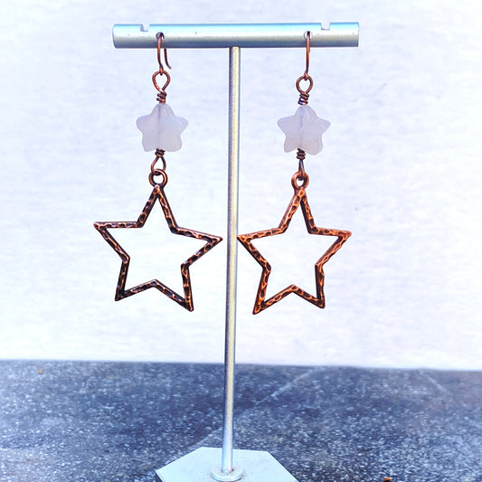 Rose Quartz gemstone Star and Copper Dangle Earrings