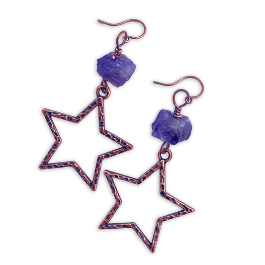 Amethyst gemstone stars and copper Star Earrings